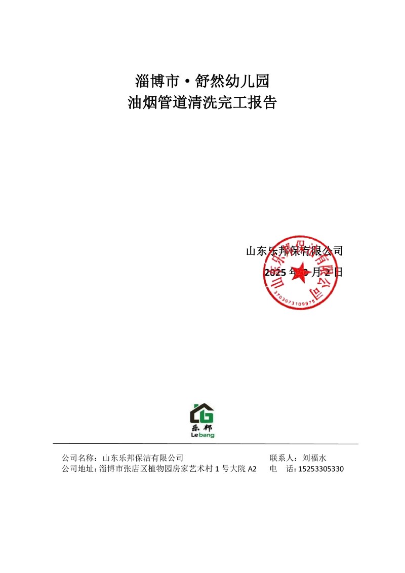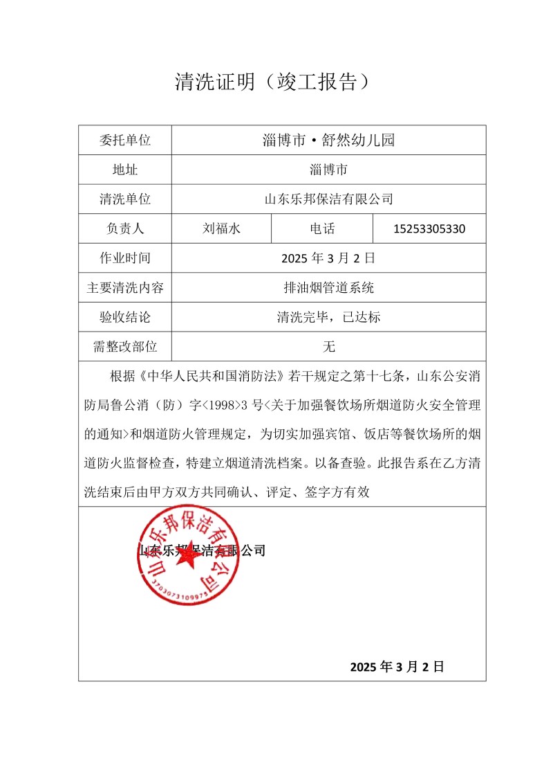 淄博市·舒然幼兒園清洗報告25.3.2