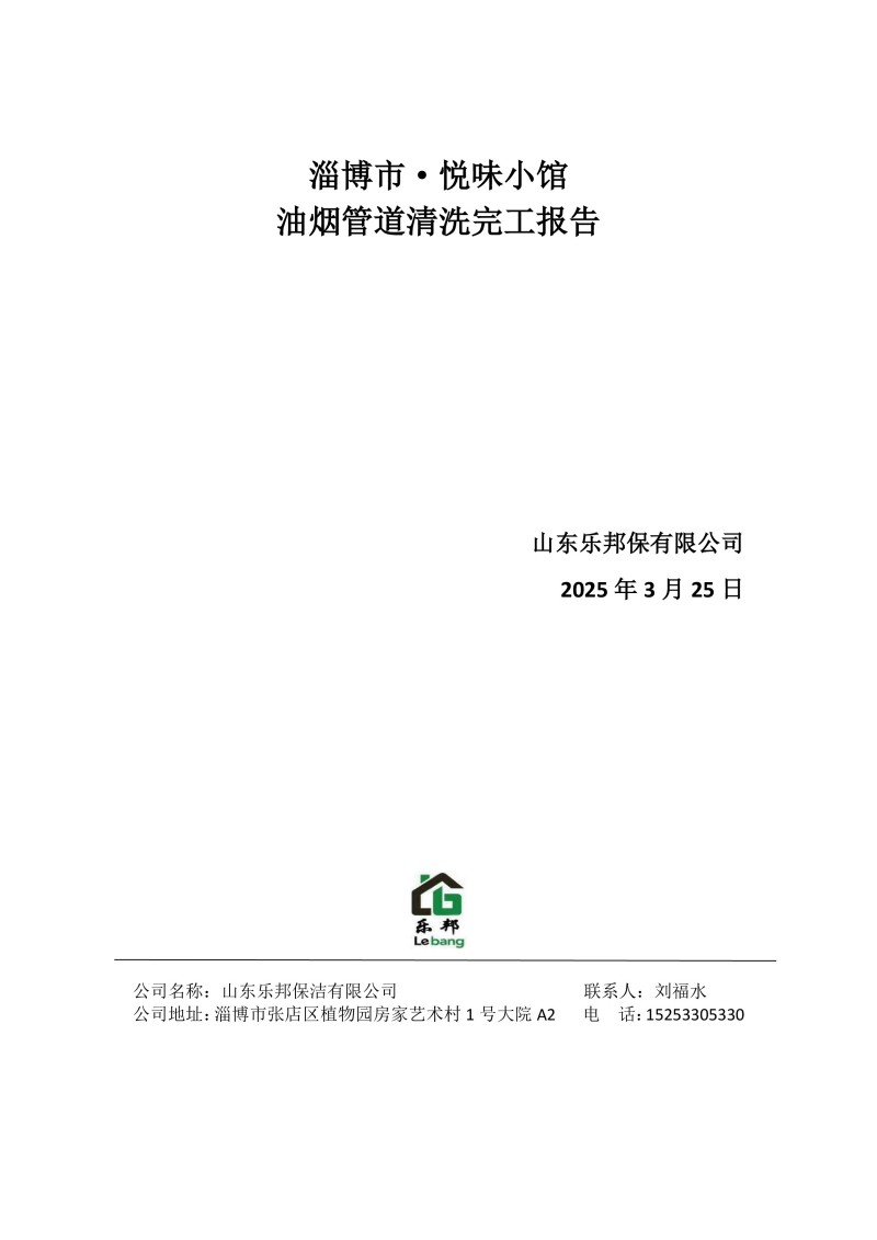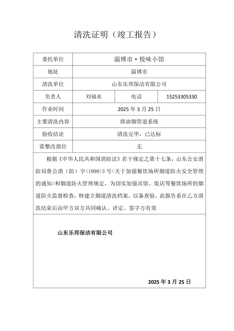 淄博市·悅味小館清洗報告25.3.25