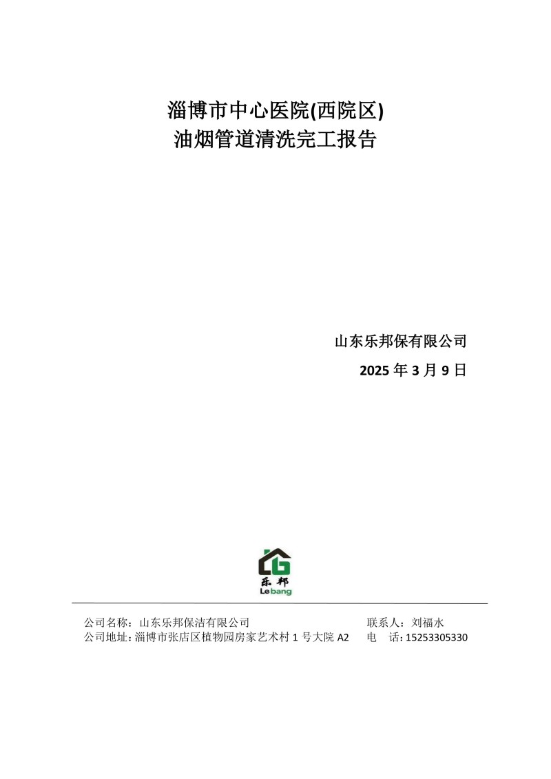 淄博市中心醫院(西院區)清洗報告25.3.9