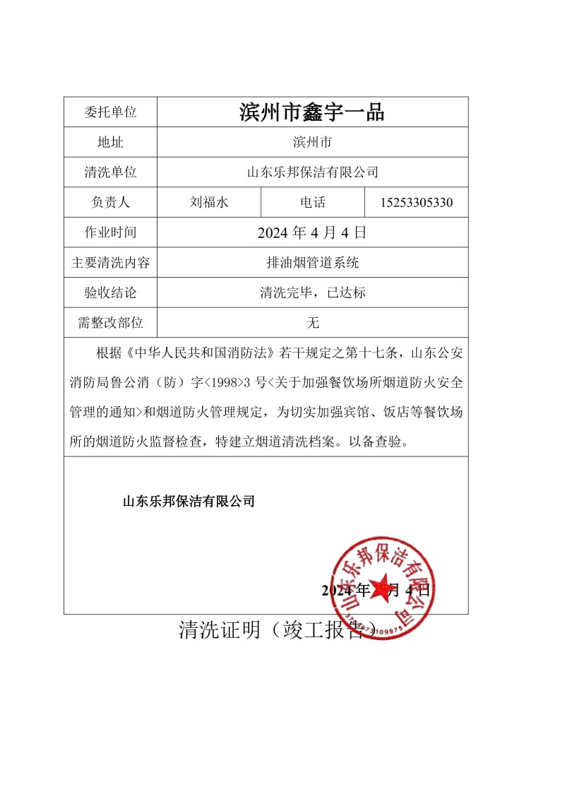 濱州市鑫宇一品清洗報告24.4.6