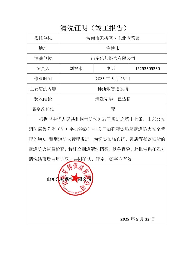 濟南市天橋區·東北老菜館清洗報告25.5.23
