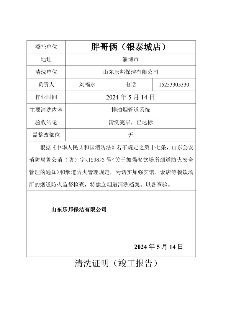 胖哥倆(銀泰城店)清洗報告24.5.14