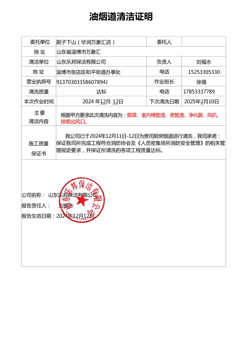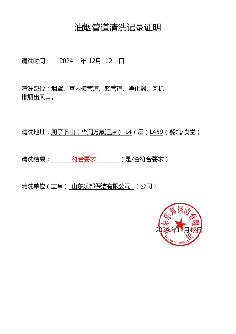 萬(wàn)象匯佰燒清洗報(bào)告24.12.11