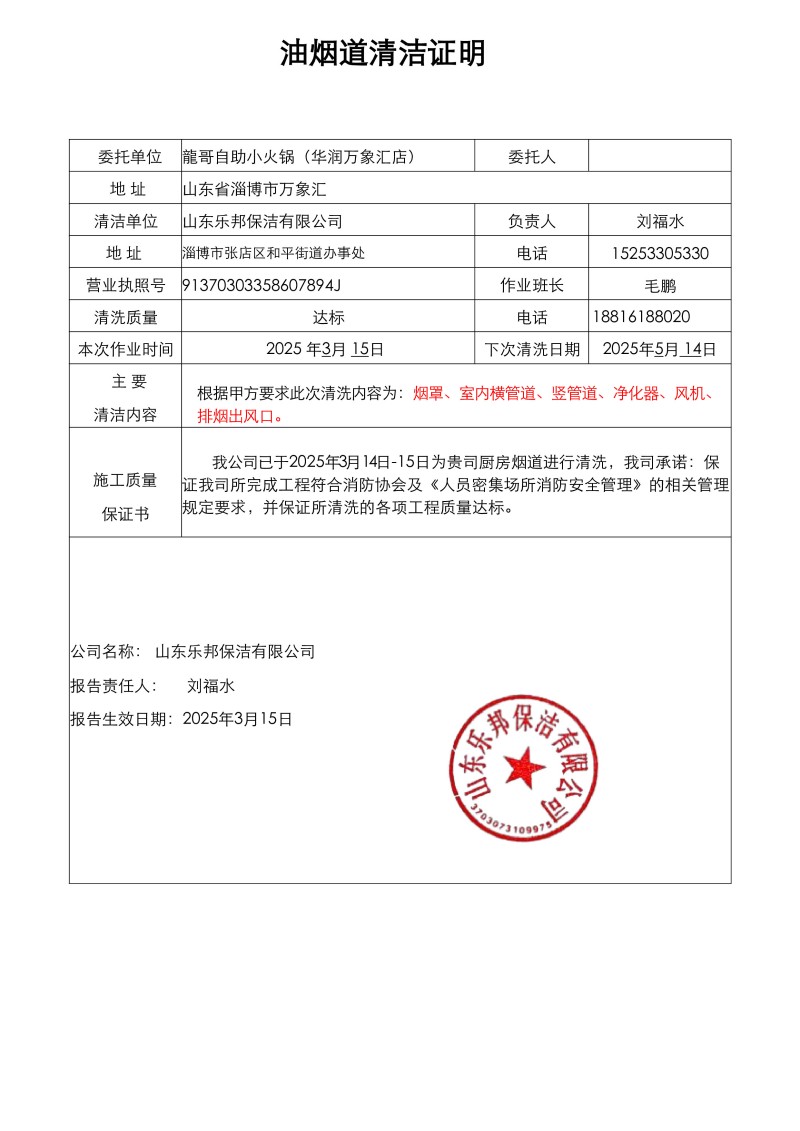 萬象匯龍哥自助小火鍋清洗報告25.3.15