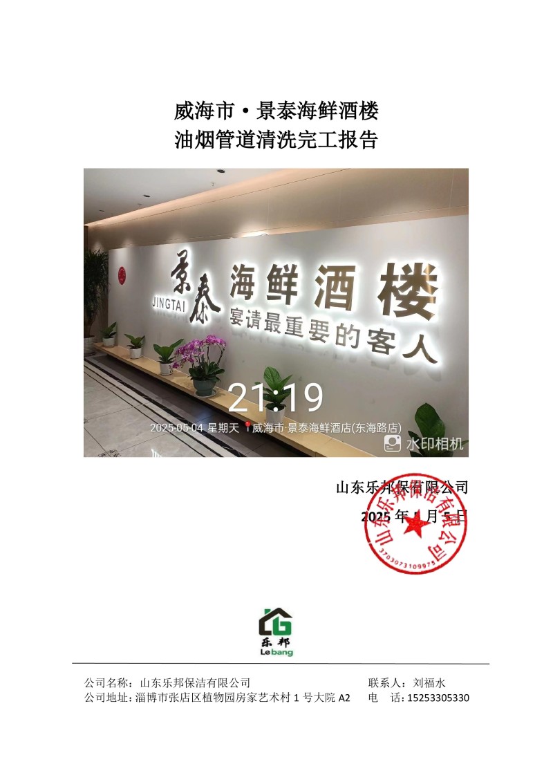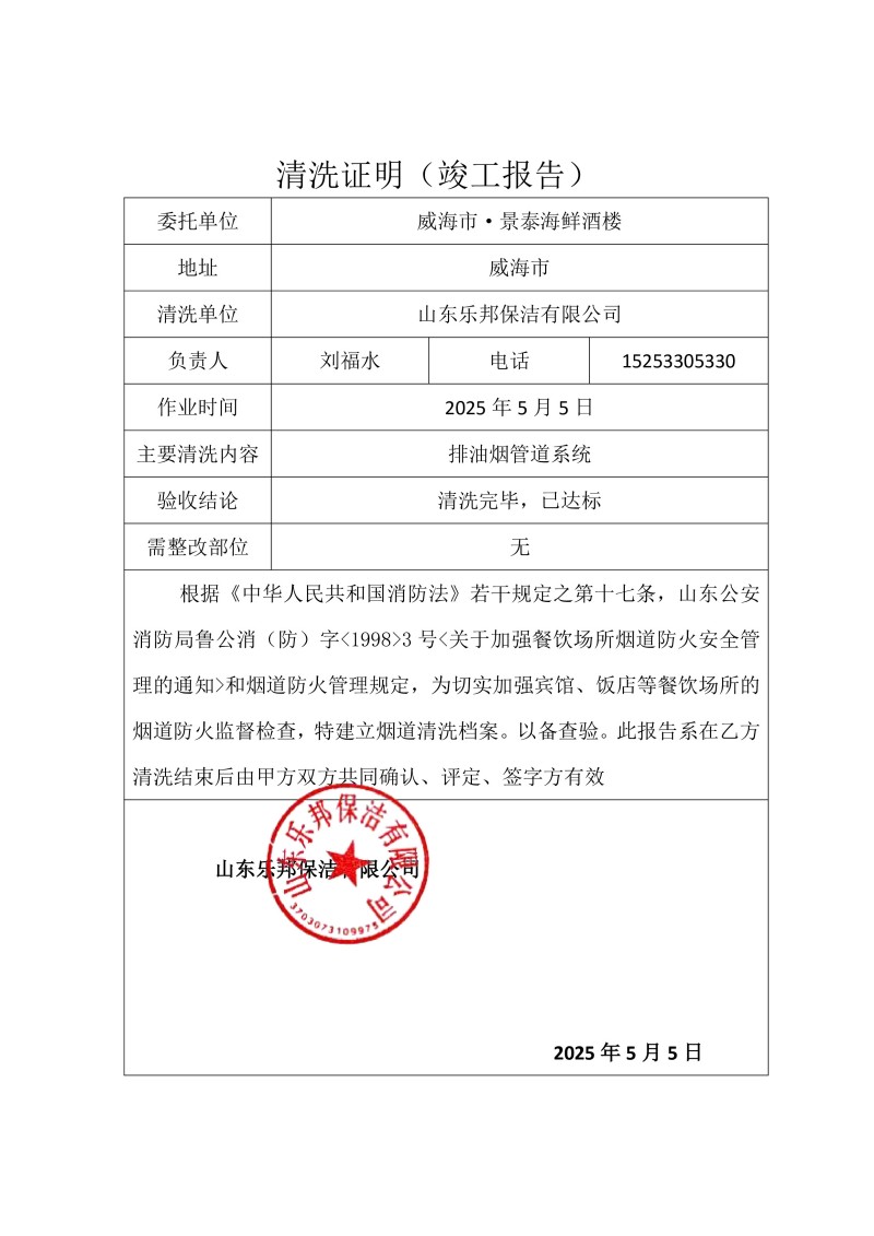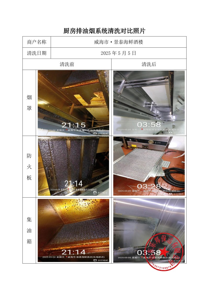 威海市景泰海鮮酒樓清洗報告25.5.5