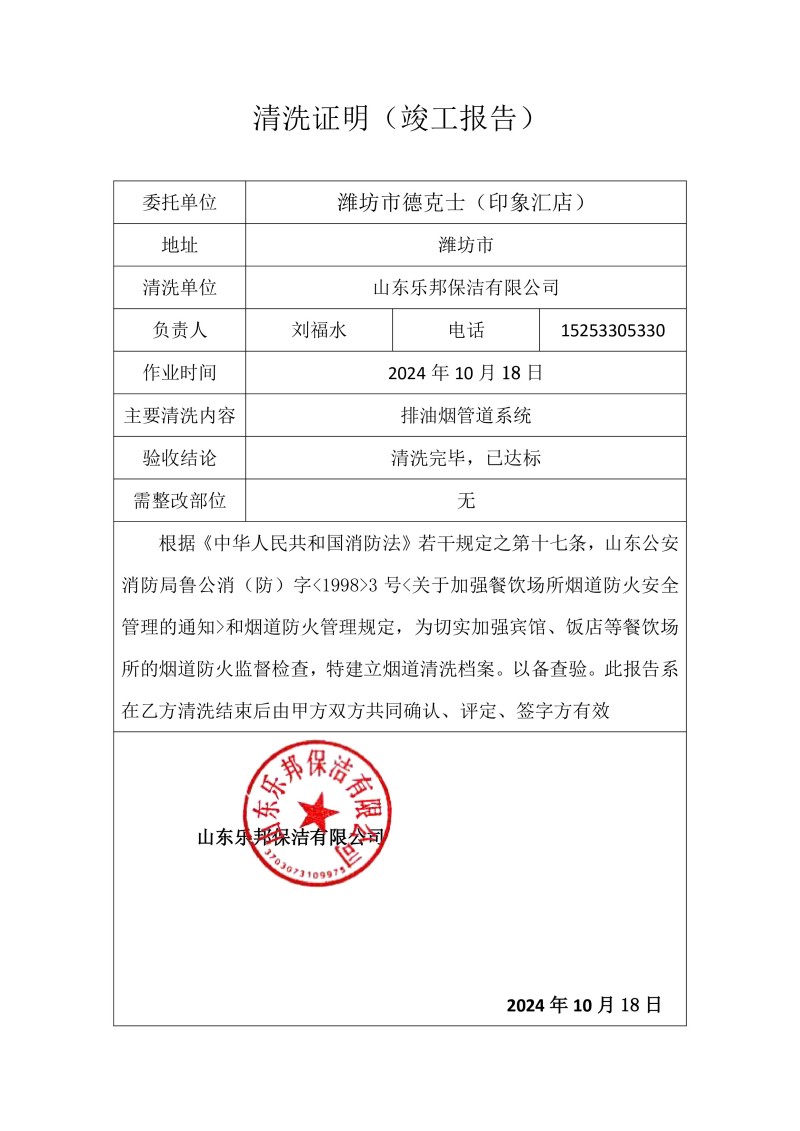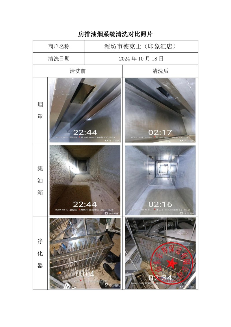 濰坊市德克士(印象匯店)清洗報告24.10.18