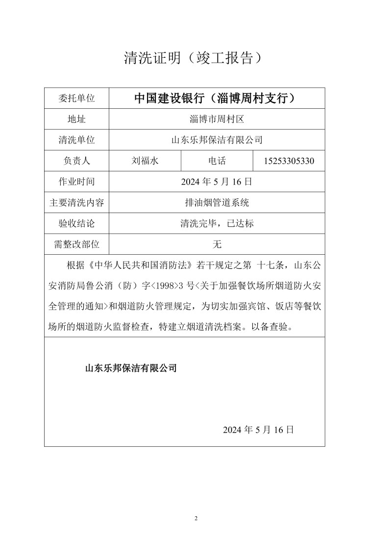 中國建設(shè)銀行(淄博周村支行)清洗報(bào)告24.5.15