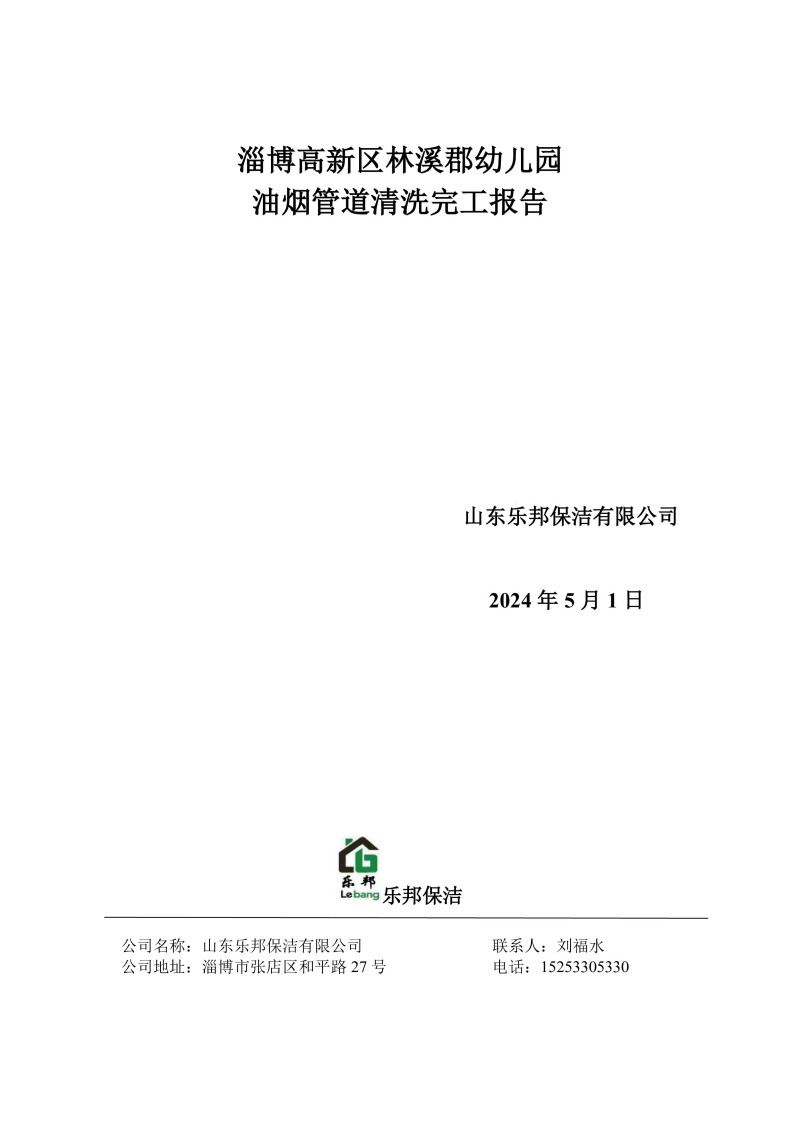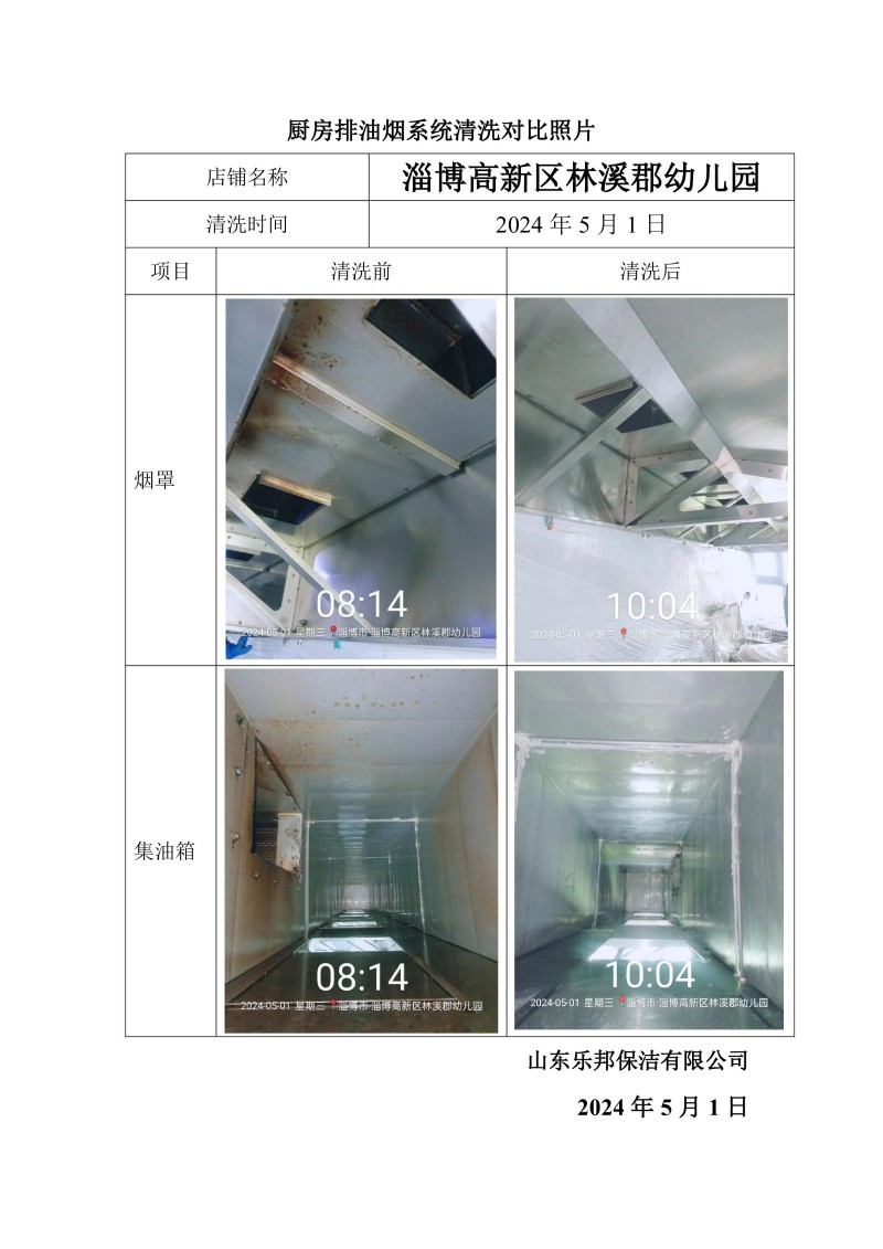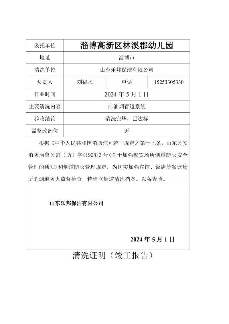淄博高新區林溪郡幼兒園清洗報告24.5.1