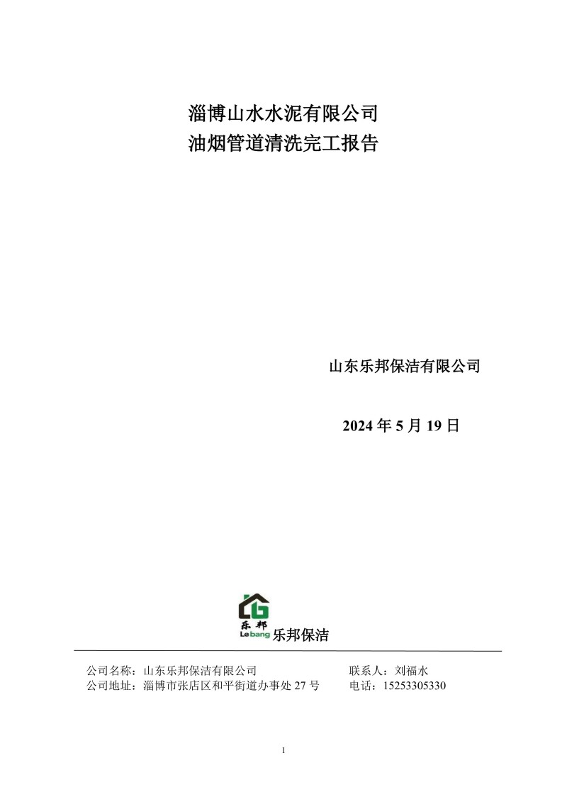淄博山水水泥有限公司清洗報告24.5.19
