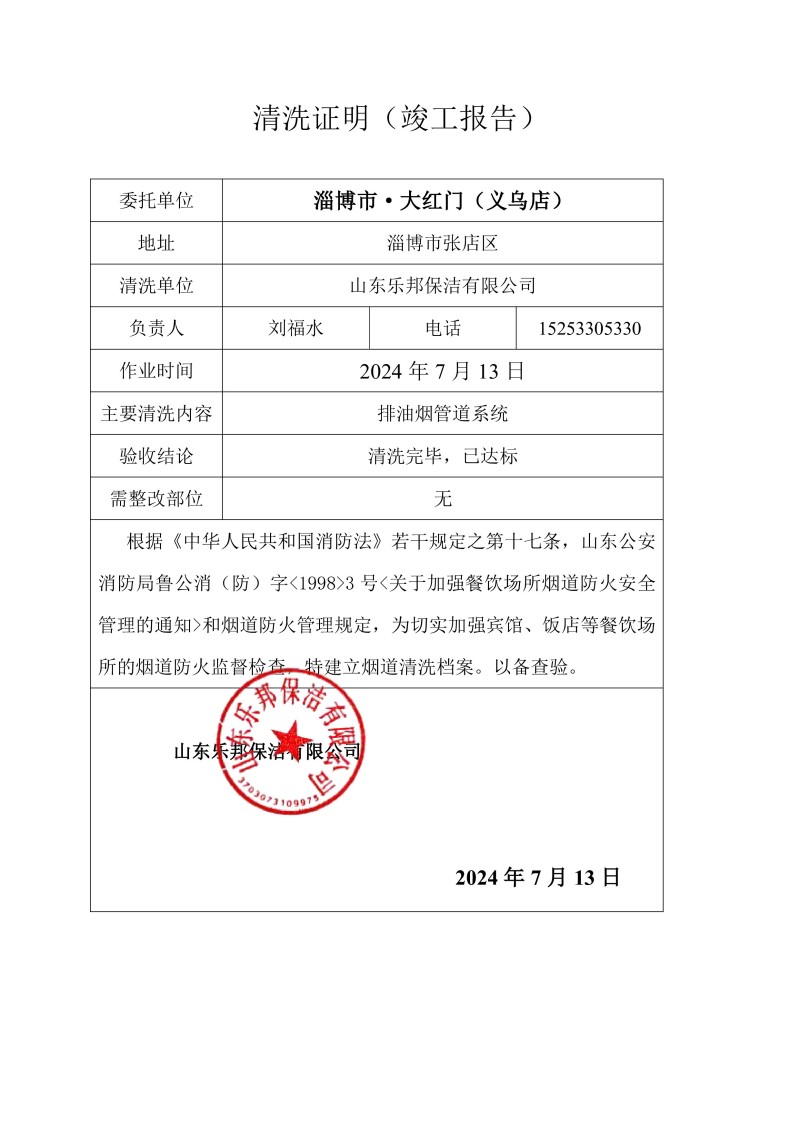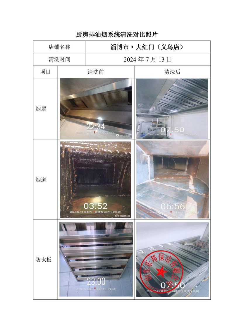 淄博市·大紅門(mén)(義烏店)清洗報(bào)告24.7.13