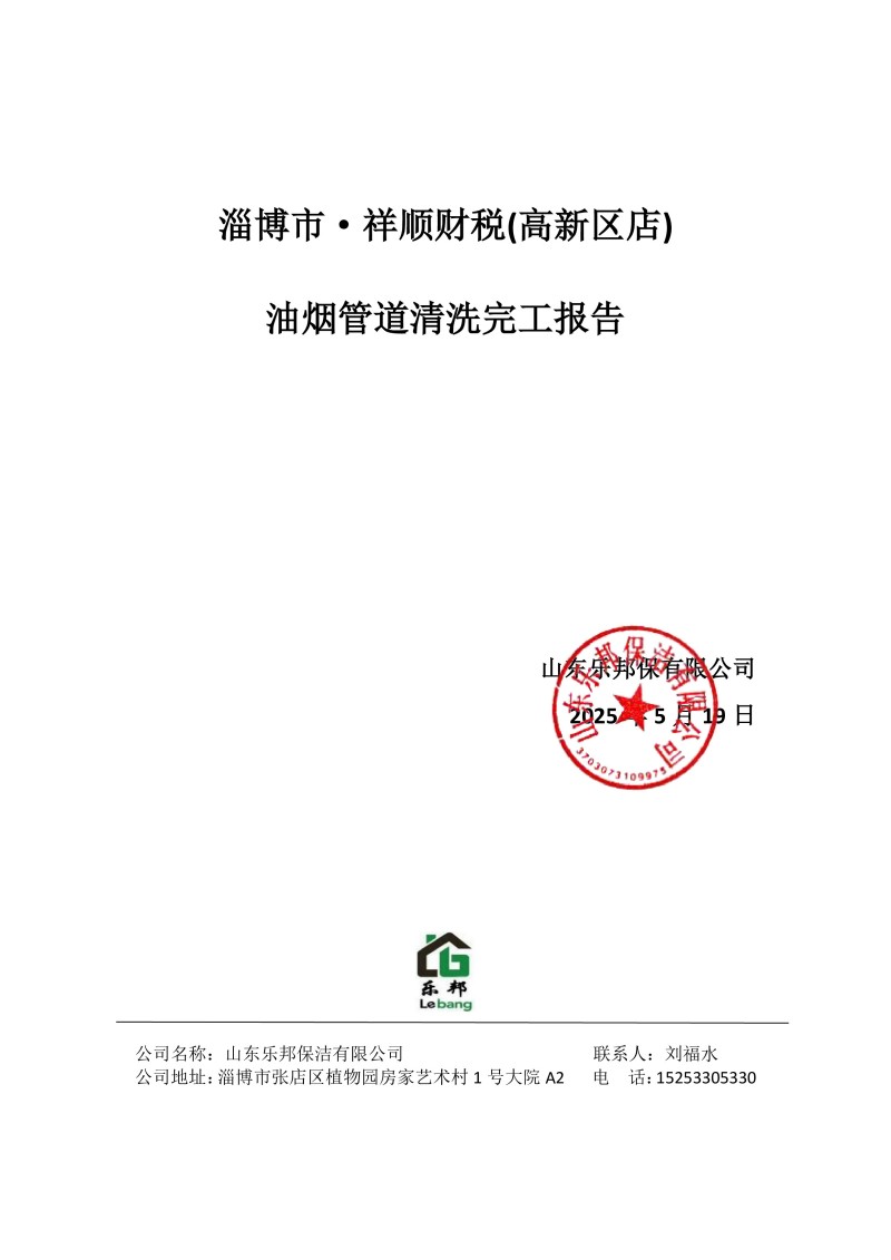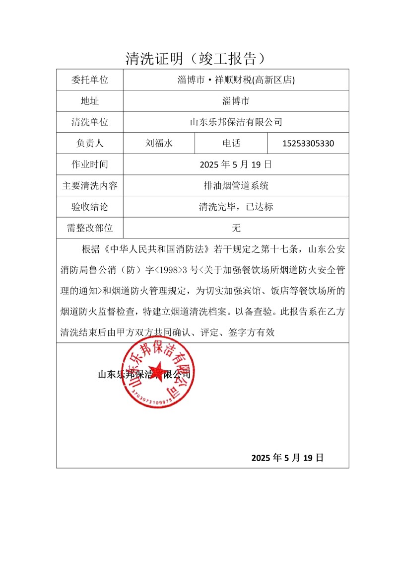 淄博市·祥順財稅(高新區店)清洗報告25.5.19
