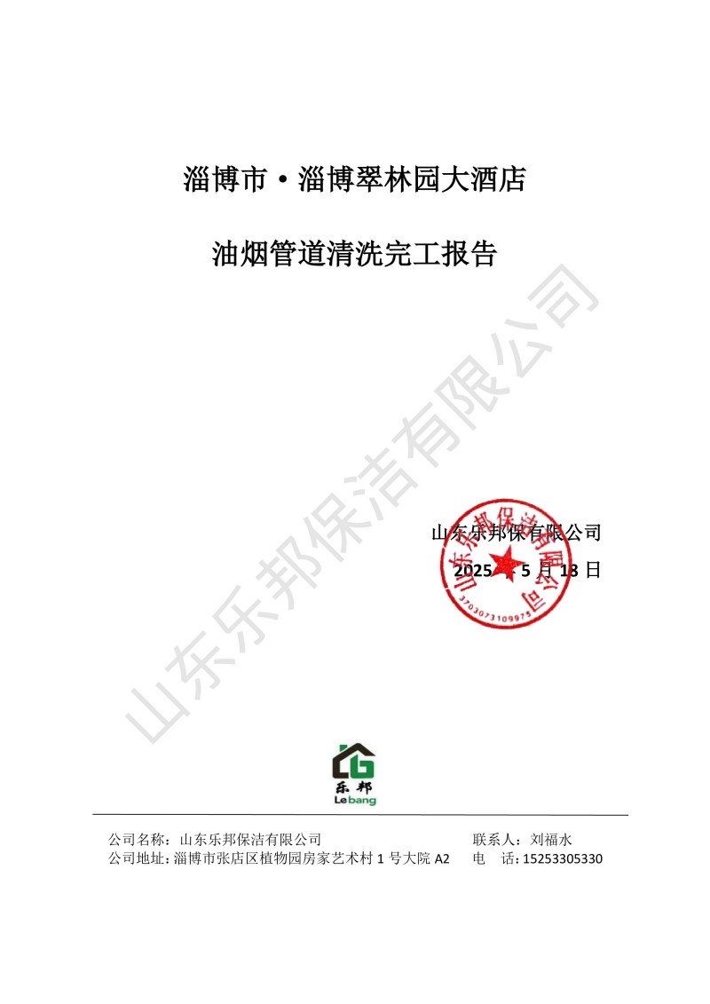 淄博市·淄博翠林園大酒店清洗報(bào)告25.5.18